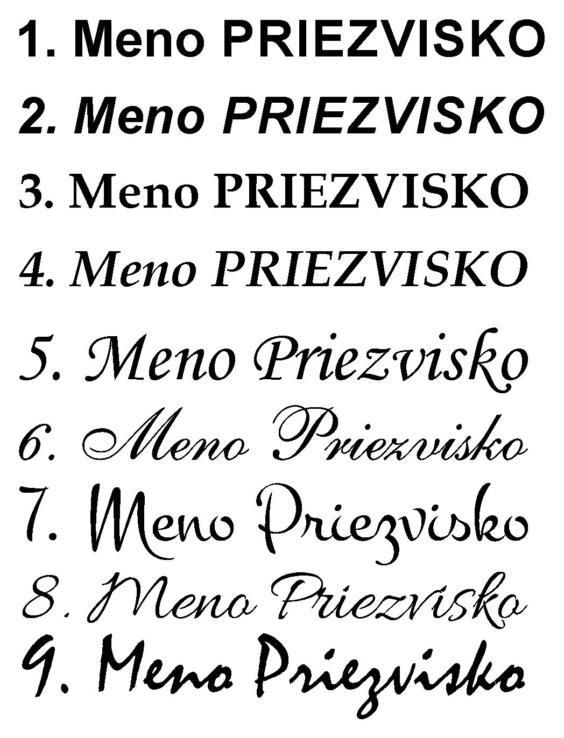 možnosť vybrať si aj iný tvar alebo typ písma, ako je uvedený v našej ponuke